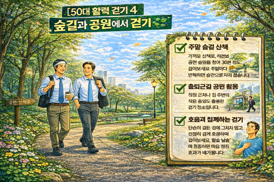 50대가 되면 몸과 마음은 이전과는 다른 신호를 보내기 시작합니다. 예전에는 대수롭지 않게 넘겼던 숨 가쁨이나 관절의 뻣뻣함이 이제는 일상에 영향을 주기도 하지요. 하지만 건강을 되찾는 길은 생각보다 멀리 있지 않습니다. 바로 걷기, 그중에서도 자연 속에서 걷기가 답이 될 수 있습니다.